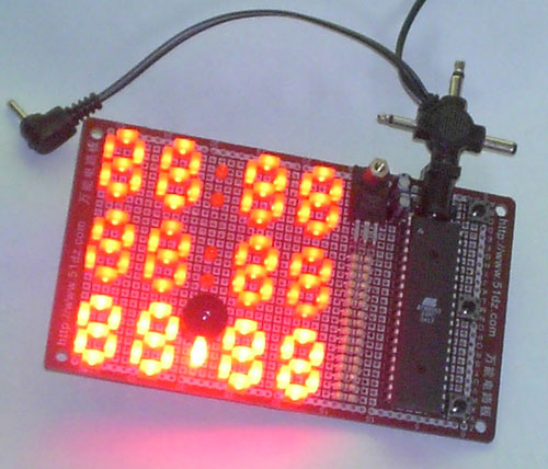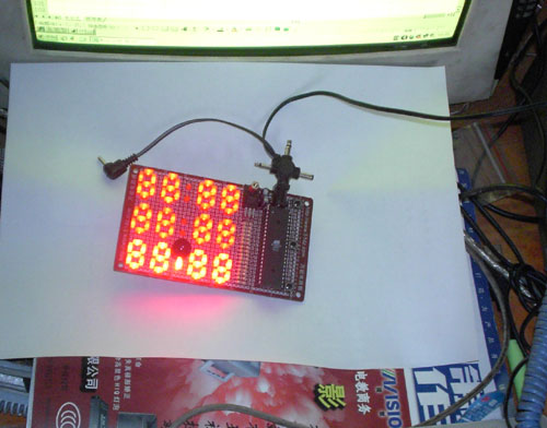 这是站长用2*5MM的发光二极管做成的十二个分立元件的数码管的图片,由于采用超亮的发光二极管,站长打算直接用89S(C)51的IO口驱动这些发光二极管。图中,站长已经连接好LED的线!(站长是准备做一个电子棋盘计时器的,反正站长是好玩!站长计划是做红方走棋累计时间,黑方走棋累计时间,当前行棋时间、超时、发声等功能。)