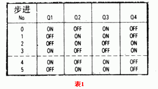四相混和型步进电机,有一特点很有用处。它可以用半步方式驱动。就是说,在某一时间,步进角仅前进一半。用单个混合或用双向开关即可实现,这种逻辑时序由表2列出。