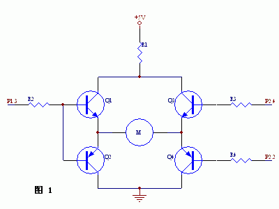 以下所述电路用于3V供电的微型直流电机的驱动,这种电机有两根引线,更换两根引线的极性,电机换向。该驱动电路要求能进行正反转和停止控制。