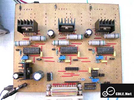 这是自己做的3轴控制版,采用L297+L298,拆机件,并口控制,带3轴限位电路。共花费不到50元。续流二极管还没有焊,整板已经调试好,用Kcam4和Mach2试验通过。