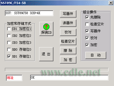 如果你手头上没有支持SST89C58的编程器,那么你就要购卖CA版的SST89C58芯片,当然不是CA版的也是可以做的,只是相对来说比较麻烦这里就不做讨论了,可以对参看红日网友发起的贴子(http://www.cdle.net/bbs/dispbbs.asp?boardID=18&ID=940&page=1)。