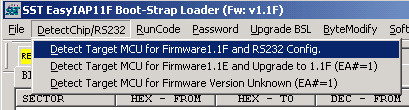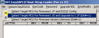 图八中选中的菜单项是把11E升级到11F的命令,下面一个则可以用检测固件版本连接固件,如固件是11E也会提示是否升级到11F,最上一个则用于11F连接EaspIAP用。