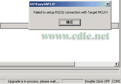 如果你用于升级的SST89C58芯片做了加密操作的话就会在升级过程中出现图十二的出错提示,如真是加密了只有用编程器擦除后直接烧入仿真监控程序或BSL11F程序了。出现这样的提示也可能是串口线接触不好,或电路有问题。