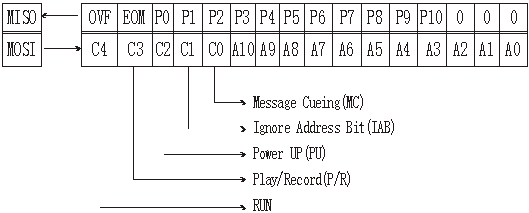 片选(SS) 此端为低,即向该ISD4004芯片发送指令,两条指令之间为高电平。