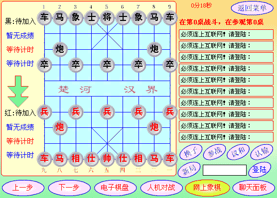 这是中国象棋的网上功能。目前已经实现了很多功能。(这需要互联网服务器支持,目前服务器调整,部分功能不能用!)
