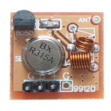 无线发射模块12B, 该发射模块体积小,工作电压范围极宽(3V-12V),发射功率大,功耗低,广泛应用在简易数据无线传输,无线遥控,防盗报警等场合。