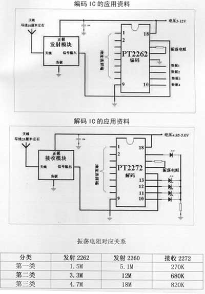 2262 2272编解码IC应用原理简图以及振荡电阻对应表格如下:
