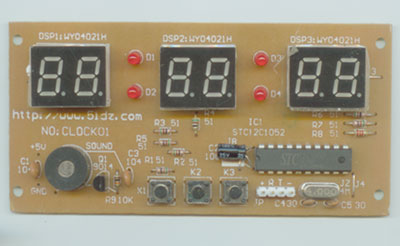 说明:成品板是指接上电源即可正常走时校时和定时,没有外壳,仅仅只能显示时间和发出声音!