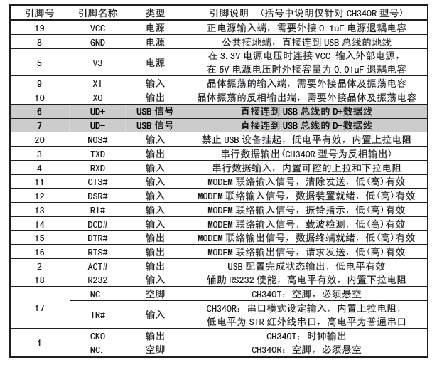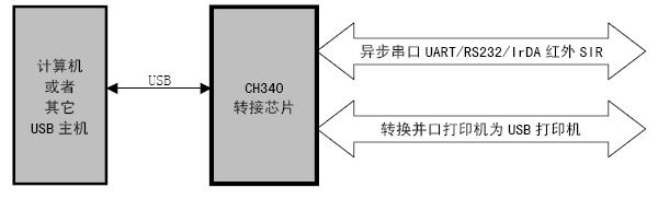 在串口方式下,CH340 提供常用的MODEM联络信号,用于为计算机扩展异步串口,或者将普通的串口设备直接升级到USB 总线。有关USB 转打印口的说明请参考手册(二)CH340DS2。