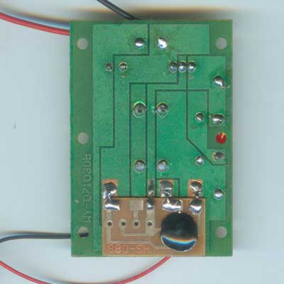 l          用剪下来的元件引脚给音乐IC焊上,IC焊到锡脚的这一面,引脚插到板上焊好。