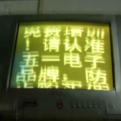 这是用好一点的电视机显示出来的近景图,大家可以看到字体笔画的边缘过渡地方的方块或者锯齿!本问题是没有办法解决的,毕竟本产品属于一个低价位的创意性的娱乐好玩的产品。