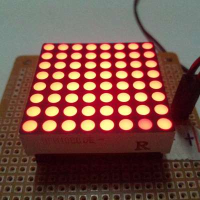 每块8X8 LED电子屏在2V电压下全亮时电流大概为300mA!点阵相当64个发光二极管集成在一起,双色的就相当于128个二极管。如果有一个发光二极管不亮,整个点阵就会报废,这包括好的管芯也没有用了,壳体、胶体都没有用了,而这些成本就会转嫁给好的LED点阵的售价上,因此,LED点阵的价格会比较高。显示一个完整的汉字需要4个,显示四个完整的汉字需要16个,因此一个4字的成品板的硬件成本往往就要接近一百大几甚至两百元了,所以,可以实际应用的板自然就要200-300元了。点这里查看¥275.00元的 。 更多特价点阵 1元 全新1088 Φ3.0 8×8 16脚红色点阵 1元 全新1088 Φ3.0 8×8 红色点阵 1元 全新1588 Φ3.7 8×8 绿色点阵 1元 全新1988 Φ5.0 8×8 红色点阵 4.5元 全新2088 Φ5.0 8×8 共阳红绿双色点阵 点阵管脚接图参考: 测试时建议电压为DC2V