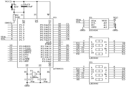 DS1624是美国DALLAS公司生产的集成了测量系统和存储器于一体的芯片。数字接口电路简单,与I2C总线兼容,且可以使用一片控制器控制多达8片的DS1624。其数字温度输出达13位,精度为0.03125℃。DS1624可工作在最低2.7V电压下,适用于低功耗应用系统。